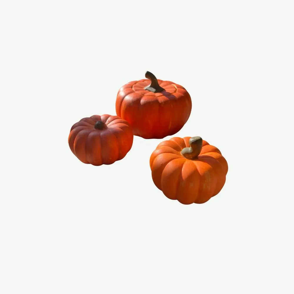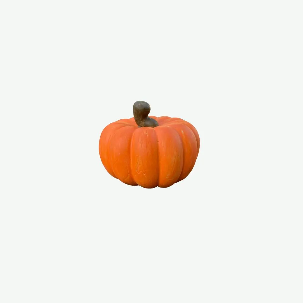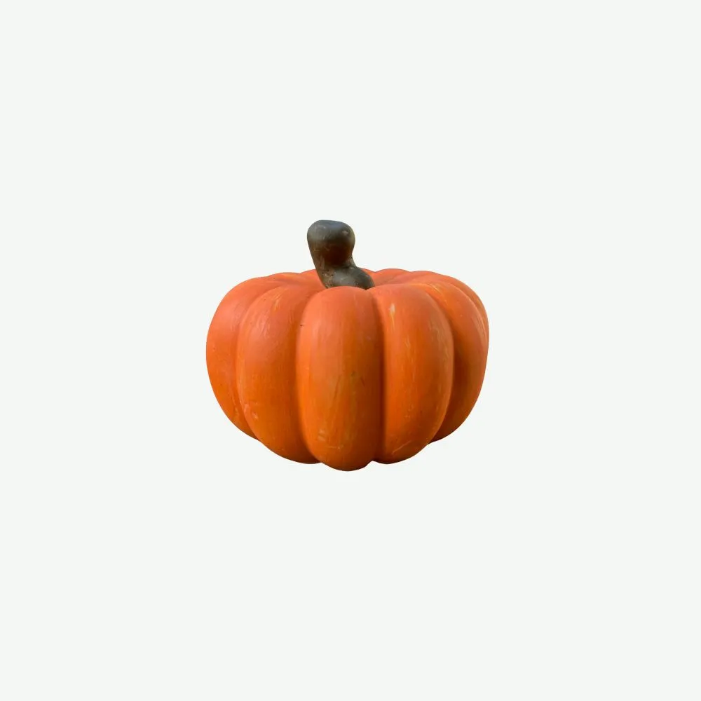 2. Rzemieślnicze Wykończenie: Charakterystyczny, wyraźnie żebrowany kształt dyni oraz krótka, gruba szypułka zostały wiernie oddane. Następnie każdy element jest ręcznie malowany: korpus w żywym, jesiennym pomarańczu, a szypułka w głębokim brązie. Ręczne malowanie sprawia, że drobne różnice w kolorze i fakturze czynią każdą dynię unikatową.
